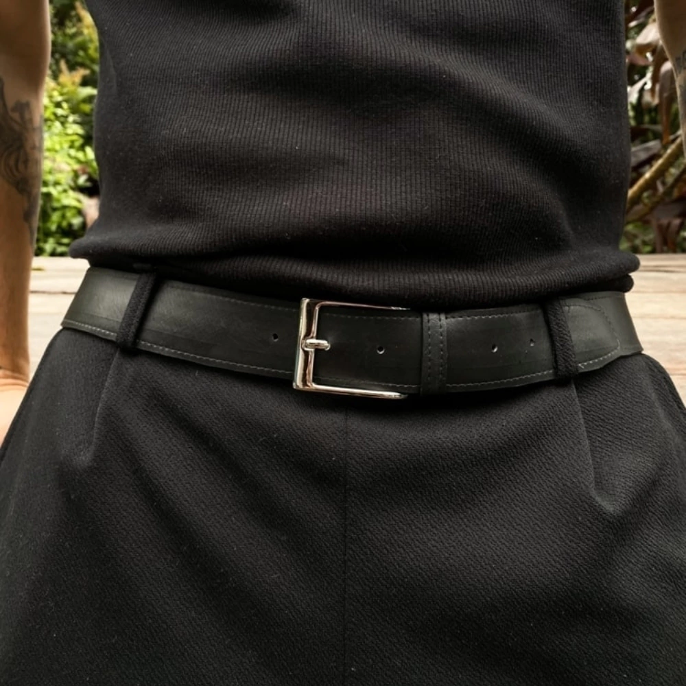 Cada cinto passa por um processo de recuperação cuidadoso, onde a câmara é limpa, moldada e restaurada para ganhar novas funções. O upcycling dá uma nova vida ao material, criando um cinto resistente que pode durar décadas, o tempo que uma câmara de pneu leva para se decompor na natureza.